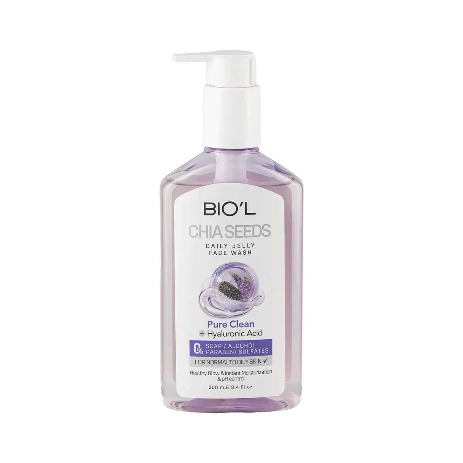 شوینده ژلی بیول حاوی عصاره چیا و هیالورونیک اسید مناسب پوست نرمال تا چرب حجم 250 میلی لیتر