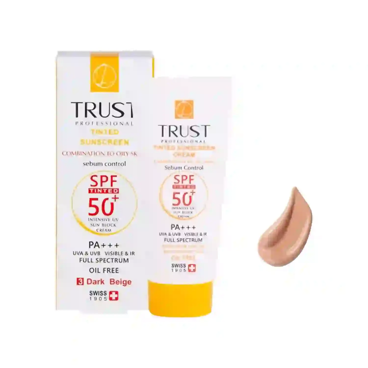 کرم ضد آفتاب و ضد پیری SPF50 تراست مناسب پوست های چرب و مختلط - بژ تیره